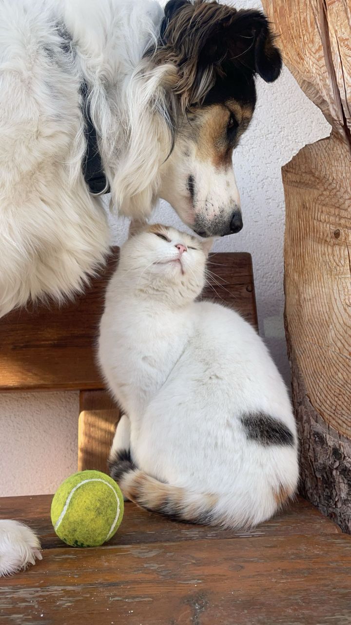 Freuen sich immer über Streicheleinheiten. Auf unserem Hof wachsen Kühe, Kälber, Ziegen, Enten, Hühner, Hasen, Katzen und natürlich unser Hund Nelly liebevoll auf.
